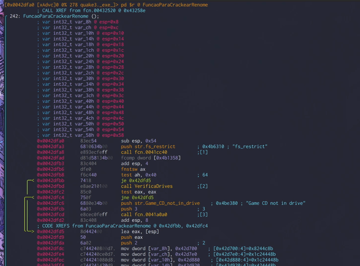 [0x00440182 [xAdvc]0 0% 465 quake3._exe_]> pd $r @ VerificaDrives+13 # 0x44017d